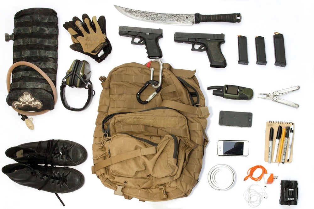 While many prepper products offer buyers the feeling of being prepared, their actual utility in a post-disaster world is questionable. The prepper’s essential accessory is the “bug-out bag”—a backpack you keep stocked with everything you’d need to survive for 72 hours. A cheap one that retails for $25 might come with an emergency blanket, ear plugs, and a fishing line. High-end ones, which can set you back as much as $700, include a Bear Grylls–brand fire starter, a crank radio, and a pocket chainsaw. If you want to stock your own bug-out bag, you can opt for gas masks from China that cost less than $20, or pay at least 20 times that much for one that ostensibly protects against nuclear agents. There are heated debates within the prepper community about what actually counts as a necessity. A lengthy article on GunsAmerica.com recommends stocking a bug-out bag with a computer tablet and micro-SD cards loaded with books and movies, because “survival is boring.”