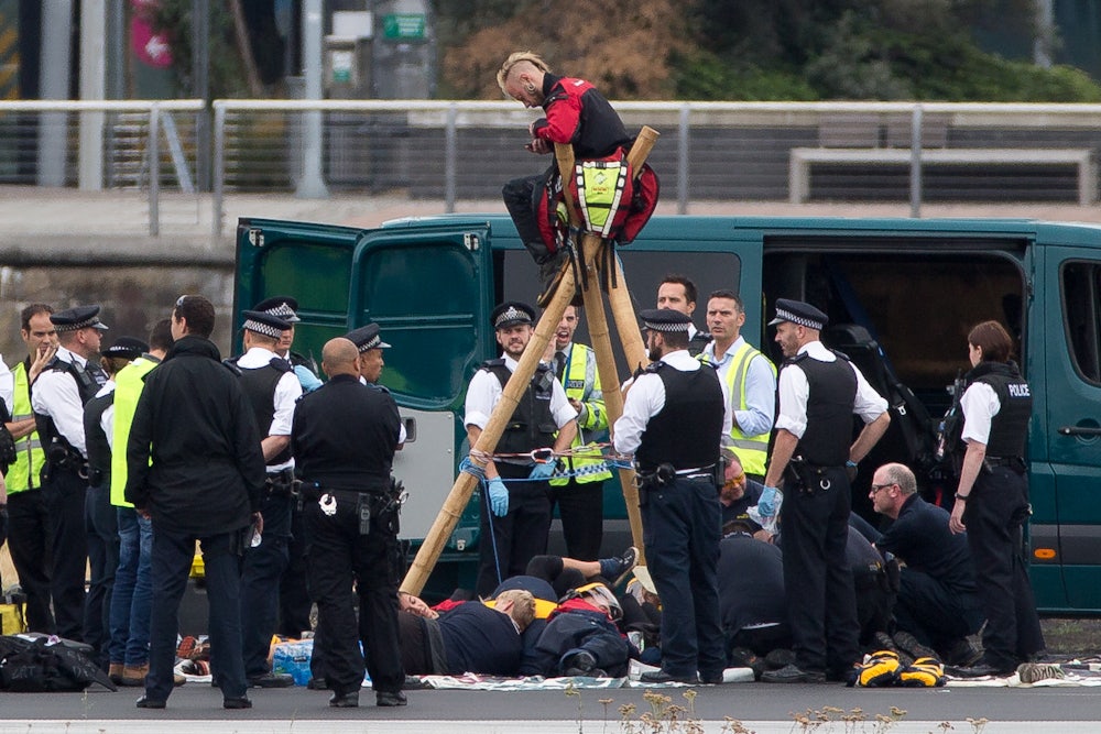 In a video and series of tweets explaining the protest, the group called out the UK’s contribution to the disproportionate impact of climate change on countries in sub-Saharan Africa, highlighted the income disparity between wealthy airport passengers and the low-income, predominantly black neighborhood surrounding the airport, and criticized the British government’s willingness to charter planes to deport migrants after over 3,000 migrants died in the Mediterranean this year due to the denial of safe border crossings by the UK and other European nations. “Black people are the first to die not the first to fly. This is why London City Airport has been #shutdown,” the group tweeted.