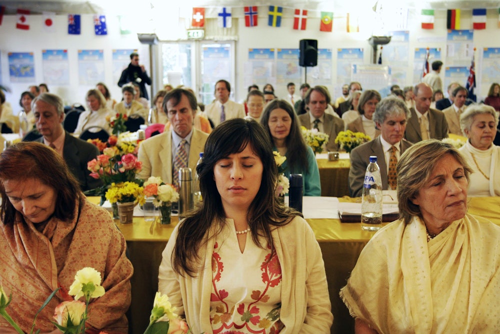 Image: Followers of Maharishi Mahesh Yogi meditate during a special ceremony after his death on February 5, 2008.