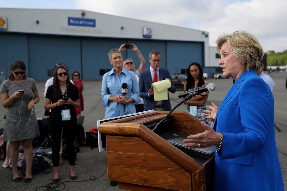 The result is the evident skewing of editorial judgment we see in favor of stories where media interests are most at stake: where Clinton gets ceaseless scrutiny for conducting public business on a private email server; Trump gets sustained negative coverage for several weeks when his campaign manager allegedly batters a reporter; where Clinton appears to faint, but the story becomes about when it was appropriate for her to disclose her pneumonia diagnosis; where because of her illness, she and Trump will both be hounded about their medical records, and Trump will be further hounded for his tax returns—but where bombshell stories about the ways Trump used other people’s charity dollars for personal enrichment have a hard time breaking through.