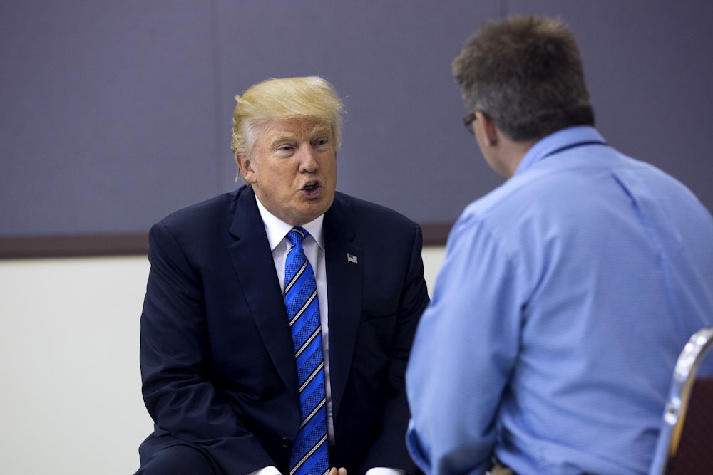 This week, Trump unveiled a (very flawed, incomplete, but nonetheless real) child care proposal. Meanwhile, Clinton had to leave the campaign trail to fight off a case of pneumonia. These are both important stories. They needed to be reported out thoroughly, and in general they were. Also this week, in the course of a single interview, Trump: