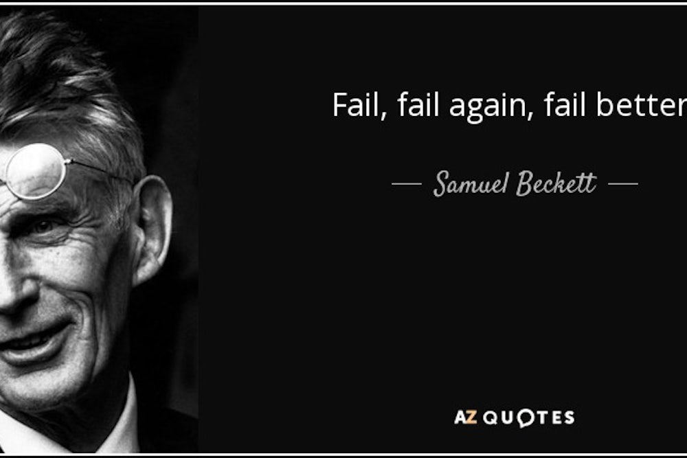 Yes, that modern cliché. It was only a couple of years ago that the people who turned the phrase “fail better” into a cliché—tech gurus, billionaire investors, and Liam Neeson, as Mark O’Connell enumerated in his definitive account of the phrase’s unlikely popularity—at least attributed the quote to the man who wrote it. Now it is merely part of the cultural ether, to be plucked for the purpose of encouraging people of all stripes to try, try again, to learn from one’s mistakes, to see hope where there should be none. As Stan Wawrinka, who won the U.S. Open earlier this month, and who boasts a tattoo of Beckett’s now-ubiquitous phrase on his left arm, explained to The Guardian: “It’s how I see life and tennis. The meaning of the quote doesn’t change no matter how well you do. There is always disappointment, heartache. You are losing almost every tournament. You need to just accept it and be positive because you are going to lose and fail. We’re not all Nadal or Djokovic, who can win most tournaments.”