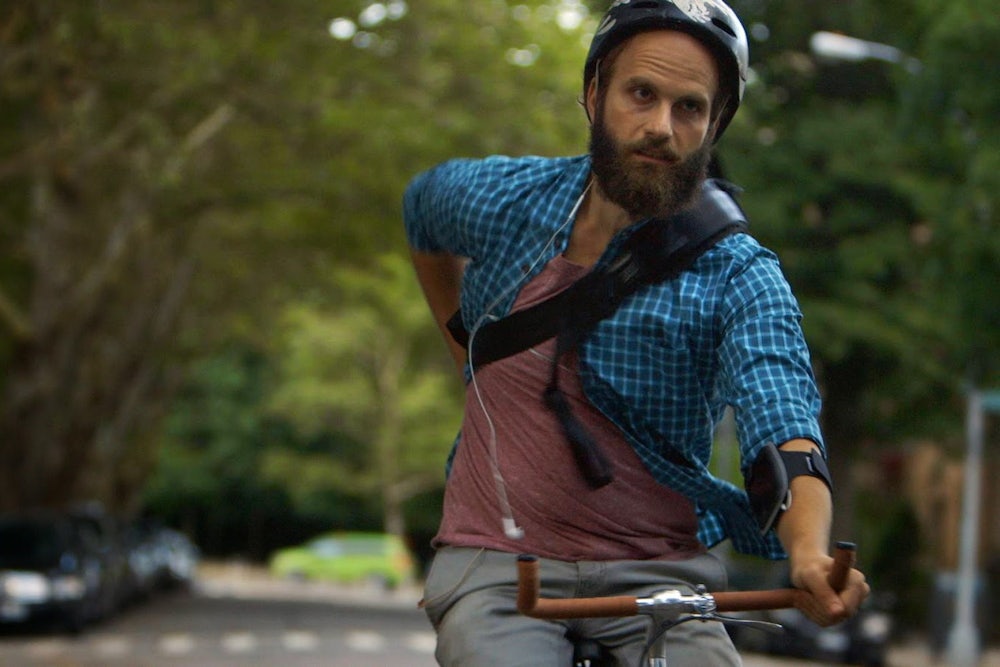 Tim, who holds down another job at a bar, has delivered weed for about six years, working first in Manhattan and now in Brooklyn. The shift in boroughs was deliberate: “I noticed a vacuum. The services that would come to Brooklyn used to be really expensive. They had crazy high minimums.” His customers in Manhattan, he explained, were a different breed; often living in doorman buildings, they expected speedy, no-fuss delivery of his product as surely as they would order in takeout or call down for a taxi. Brooklyn provides a more relaxed environment, safer roads, and understanding customers. “I would never have agreed to do something like this with one of my Manhattan customers,” he said, cozying down in my living room. Tim appreciated a lot of what he saw in High Maintenance. A scene in which The Guy can’t find anywhere to park his bike and considers chaining it to a memorial for a deceased cyclist while an angry neighbor looks on, made him laugh with recognition. The show seems like it was written “by someone who has done this before,” he said.