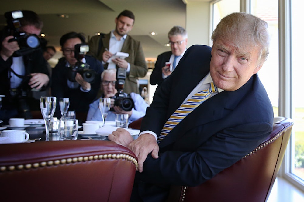 Trump has never abided by the rules of traditional campaign reporting—and he has no need to do so. Why foster trust with the reporters who cover him when he can already rely on endless air-time, without having to pay a cent for an ad? All he needs is a bit of bait—like, say, the promise of a conversation about birtherism—and the media turns the spotlight on him. Reporters have yet to figure out how to best him at this game and find themselves at his whim. As recently as Thursday, he mocked his traveling press corps for being late to his rally and refused to wait for their arrival to start: “I just heard the press is stuck on their airplane. They can’t get here. I love it.” The reporters who cover him daily on the trail were furious, but, after the campaign only recently lifted a ban on many reporters from prominent media outlets, they feel they have no bargaining power.