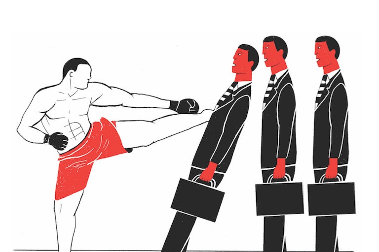 Bread crumbs, however, are exactly what the UFC believes its fighters deserve. Dana White, who lauded Donald Trump as “a fighter” at the Republican convention, sees the world in Trumpian terms. To White, there are two kinds of fighters: those who earn one of his “locker-room” bonuses with a violent knockout, and the losers who wind up unconscious. “The guys who are complaining about this are the guys that don’t matter,” he has said. “The guys who make it exciting—the guys who rise to the top—are the guys who deserve the money. Let’s not forget, we live in fucking America, the land of opportunity.”