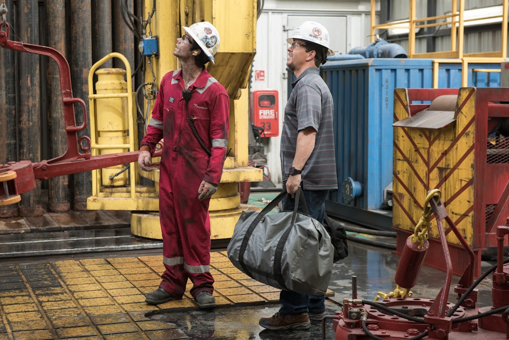 Have no doubt: This is terrifying. Berg’s signature skill might be to make Towering Inferno-level horrors feel like they have a human scale, and you end up invested in all these workers trying to get off the rig even if they haven’t given you enough personality to necessarily care about them all that much. Berg takes the cue from his no-nonsense characters and you feel their peril: Particularly effective is Gina Rodriguez’s Andrea, one of the ship’s navigators who is believably both strong-willed and absolutely petrified as her ship dissolves around her. (It’s hard to stand out when your character has no real traits other than “scared of the fire,” but she pulls it off.) Russell is perfectly crusty as the old ship captain; he’s full entrenched in his Tom Skerritt phase. As for Wahlberg? I’ll confess, I prefer him far more when he’s playing weirdos (The Departed, I Heart Huckabees) than when he’s trying to convince us of his own heroism. But, if nothing else, he fills out a screen, which is all Berg ever asks him to do. He does not trip over the props.