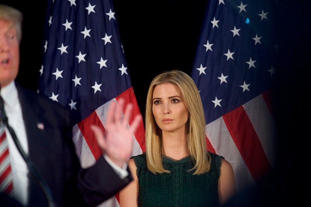 Emily Nussbaum has aptly described Ivanka’s strategy as “weaponized graciousness.” She has been using her father’s presidential campaign as a platform for her own brand, described on her website as “a lifestyle concept dedicated to women who work.” She tweets about “make-ahead snacks to get through the week” and “tips and tricks to boost your job hunt.” If there is one person who can save Donald Trump’s numbers among women, it’s Ivanka. But perhaps she’s finding it harder to convince herself that coming to her father’s aid will be beneficial—not only for women generally, but for her specifically.