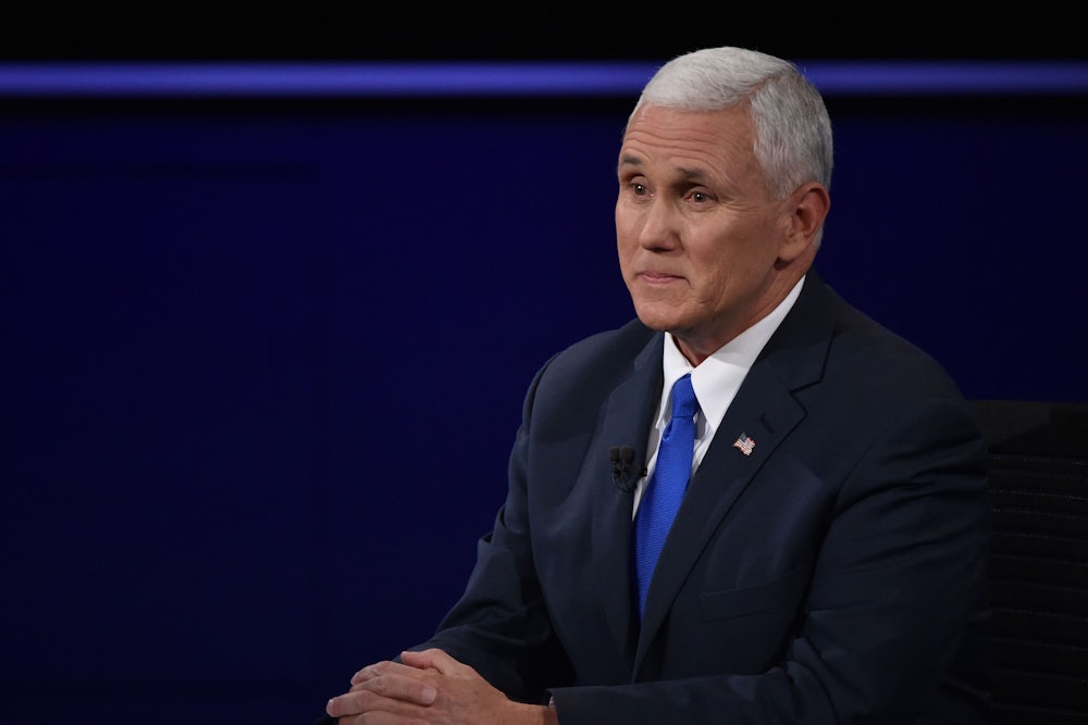 For an hour and a half on Tuesday night, the Republican Party’s vice presidential nominee parried with Democrat Tim Kaine as if Trump were as mild mannered as Mitt Romney and as doctrinaire as Paul Ryan. He shook his head in disbelief when Kaine faithfully recited Trump’s litany of offenses—his racist and sexist attacks on political and legal enemies, his affinity for autocrats and dictators, his promises to deport all immigrants and ban Muslim travel and immigration—as if Kaine had just invented them.