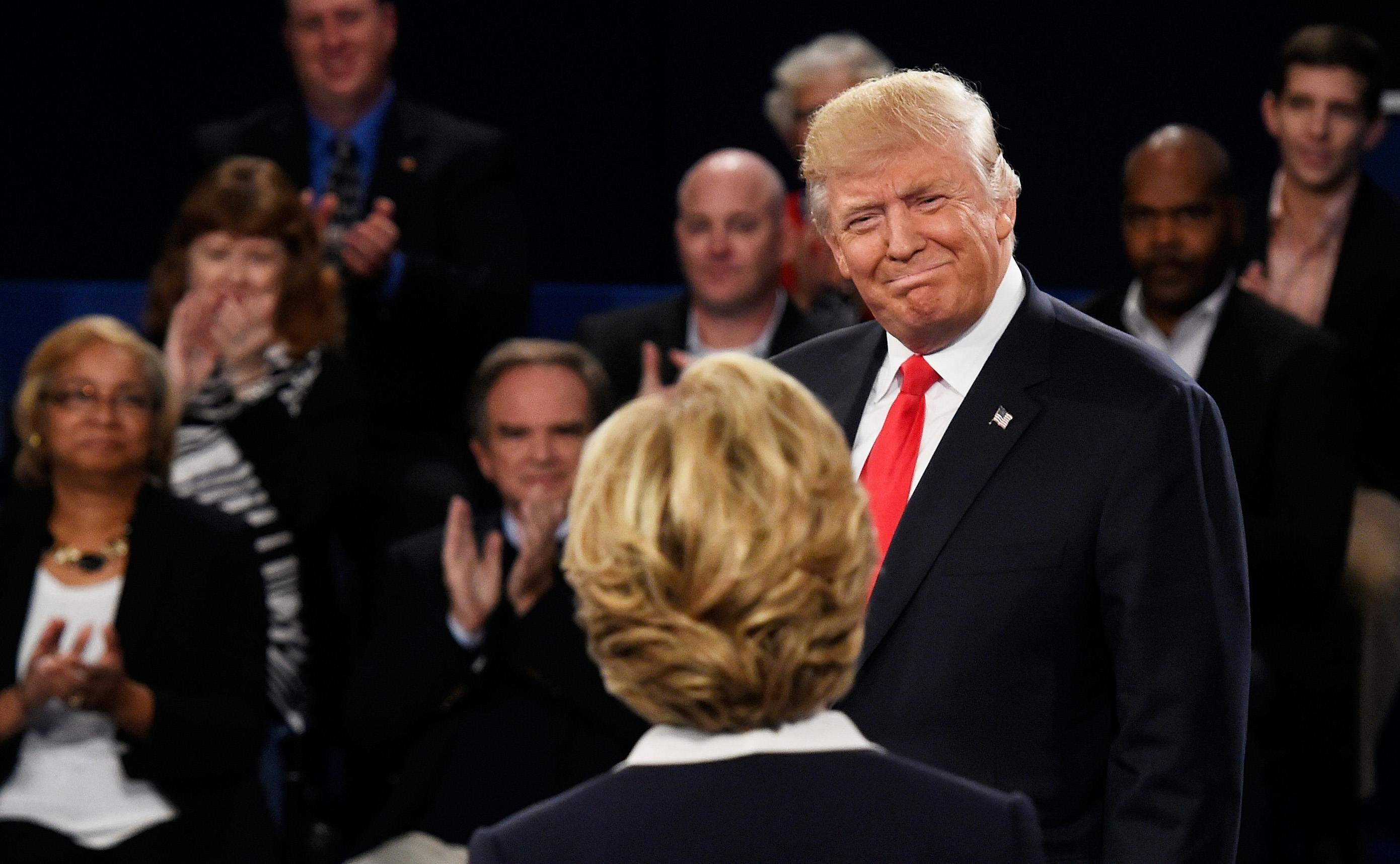 It was jarring contrast to the first half of tonight’s debate. An hour earlier, Trump had said that if he were president, Clinton would be in jail today.