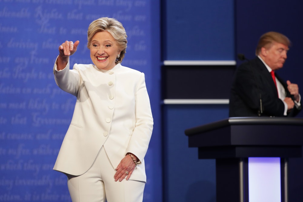 This all transpired in the first 35-40 minutes of the debate, when a subdued Trump was supposedly at his strongest. After that, he denied mimicking a reporter with a disability (he did it at a televised rally). He dismissed multiple sexual assault allegations as the fabrications of fame-seeking liars, saying, “I didn’t even apologize to my wife, who’s sitting right here, because I didn’t do anything”; and when Clinton noted he avoided taxes, he called her “such a nasty woman.”