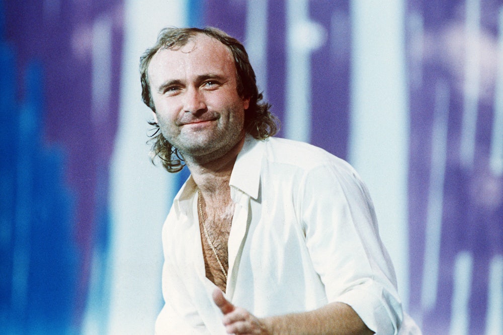 Apparently not. Genesis’s intellectual prog rock had given way to a playful populism—art-house meaning replaced with the joyful and absurd. The treble-heavy chart-topper “Don’t Lose My Number,” was pure kitsch, its lyrics maddingly vague, as if Collins had written them on a napkin and then proceeded to mop up a drink. Collins was aware that his songs were largely about nothing, as evidenced by the video for the hit, which included Goofy Phil as a samurai warrior, and earlier, as a Gene Wilder-esque fellow in a white suit on a beach. At stadium shows he often wore a mechanic’s jumpsuit—a far cry from Peter Gabriel’s fox head and dress in the early days of Genesis. Collins was, at times, into swelling orchestral sounds and peppy horns, but only in moderation. He seems to have somehow missed the coke binge of the 1980s, and all of its interesting excesses. “I’m the breadwinner, the provider, and I need to go out and work my family,” he writes. “Not to buy a guitar-shaped swimming pool or a champagne-colored Rolls-Royce. Just because, quite simply, it’s my responsibility.”