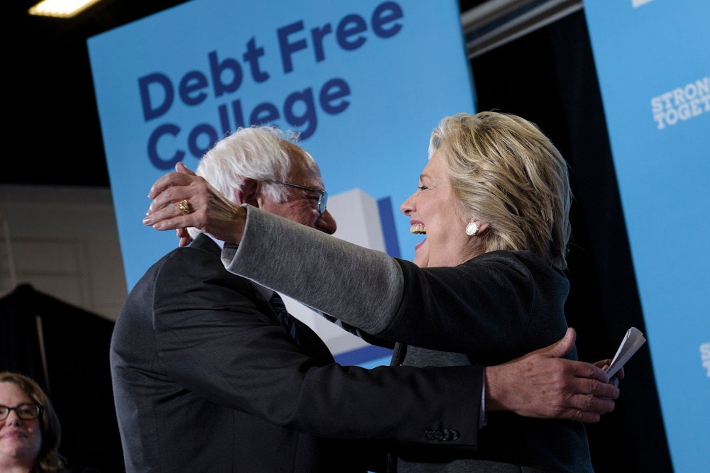 Sanders’s strong support for Clinton, even though they “disagree on a number of issues,” is partly due to her genuinely moving in his direction on several policy issues—particularly his plan for tuition-free public colleges and universities, which she essentially embraced. Most of their “significant coming together,” as Sanders called it in his convention speech, came at the meeting of the Democratic Platform Committee, which produced, in the Vermonter’s words, “by far the most progressive platform in the history of the Democratic Party.”