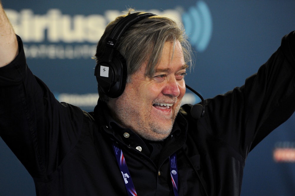 Stephen Bannon, the CEO of Donald Trump’s presidential team, has kept a low public profile, even if his fingerprints are all over Trump’s attacks on Bill Clinton’s sex scandals and the Clinton Foundation. Unlike campaign manager Kellyanne Conway, or her predecessor Corey Lewandowski, Bannon is not on cable news all the time. The job of surrogacy he leaves not just to Conway and Lewandowski but figures like Newt Gingrich, Chris Christie, and Rudy Giuliani. He has only given two interviews and one was to the safest of outlets: the Breitbart.com radio podcast that he himself started a year ago when he was CEO of Breitbart.com (a position he says he’ll resume at the end of the election). Speaking on the show on Wednesday, Bannon said, “Regardless of the outcome, there has been a sea change in American politics. This movement, as I keep saying, is just at the top of the first inning.”