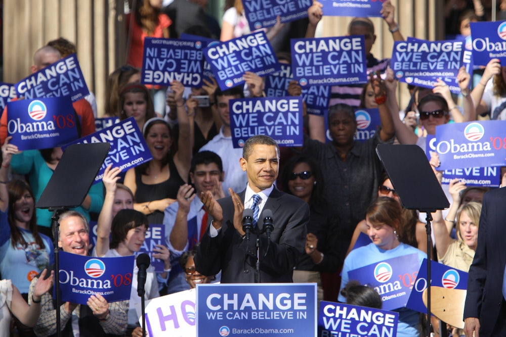 For as long as I live, I will never forget November 4, 2008. I was 19 and an undergraduate at American University, among the most politically active schools in the country. I’d arrived in Washington, D.C., the year before, another earnest young man on an Amtrak train from a small town, marveling like Jimmy Stewart at “the Capitol dome as big as life, sparkling away.”