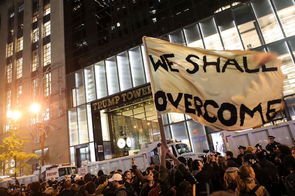 But on Wednesday night, another option presented itself. Hundreds of thousands of people in New York, Los Angeles, Philadelphia, Dallas, Oakland, and other major cities took to the streets to protest Trump’s election. In New York, thousands gathered outside of Trump Tower in protest of Trump’s racist rhetoric and chanted, “Not our president.”
