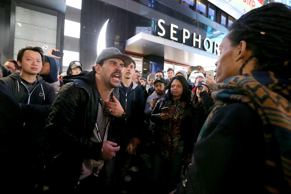 Here, too, the most interesting moment in the video isn’t the rant; it comes when an aghast patron intervenes. “Do not talk to other people that way,” he says. The two then discuss whether they should “step outside” and settle things, before the Trumpeter leaves the shop grumbling about the “absolutely ridiculous” experience. (He has since apologized for his behavior, but still maintains that he was discriminated against.)