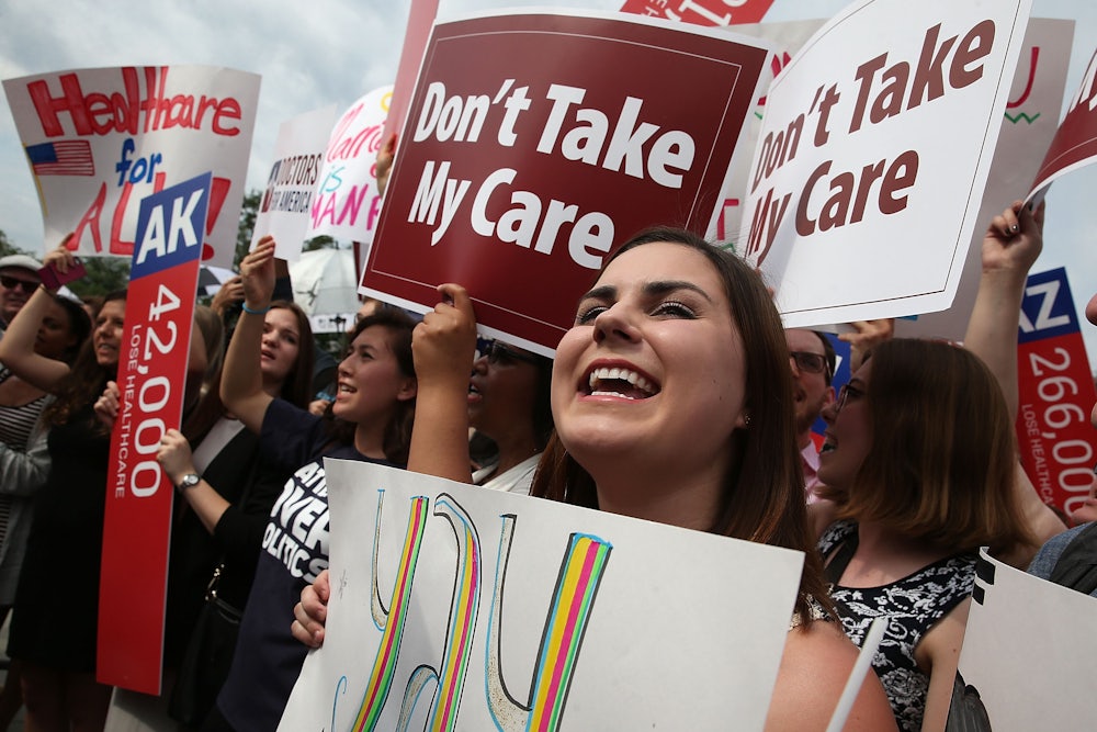 Something similar is happening right now with Obamacare. For the last five years, Republicans have railed against the health care law, and voted to repeal it over and over again. With Trump’s election, they’ve finally caught the car—they have the votes to repeal it in Congress and a willing pen waiting for them in the Oval Office. But repealing Obamacare would mean taking health insurance away from 20 million Americans. That is, to put it lightly, a humanitarian problem, but for Republicans it’s also a public relations nightmare. And they know it.