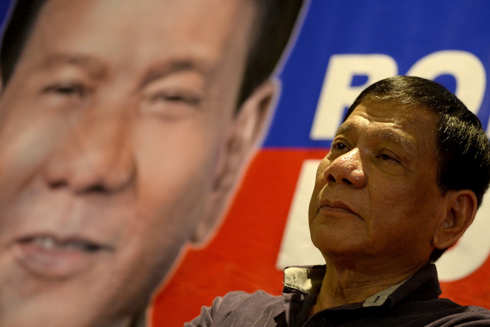 This is a horrible Trump impression. Duterte does what many comedians do with Trump—ramp up his vulgarity, in this case by cursing a lot—but he makes no effort to get the voice or the mannerisms right. The substance of what he had to say, though, is interesting. “Oh, President Duterte,” Duterte says, speaking as Trump. “We should fix our bad relations. It needs a lot of, y’know, you just said something good here. And you’re doing great. I know what’s your worry about these Americans criticizing you. You are doing good. Go ahead. I have this problem on the border of Mexico and America and these goddamn shit guys are [unintelligible]. ... Maybe you can give me a suggestion, one or two, how to solve this goddamn bullshit son of a bitch.” If this is what Trump said to Duterte it makes almost no sense.