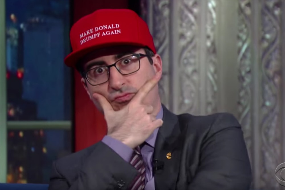 Despite its uselessness, Drumpf became briefly, inexplicably popular. People took selfies in special Make Donald Drumpf Again hats. They tweeted smoking hot burns blaring #MakeDonaldDrumpfAgain. There’s even a Chrome extension that replaces “Trump” with “Drumpf.” Yet the only concrete outcome of this protest was that HBO won a ratings boost. Oliver’s segment broke viewing records. It premiered in February; by June, he’d sold 50,000 Make Donald Drumpf Again hats. Jay-Z even wanted one! And is it really a protest if you can’t buy merchandise from HBO?