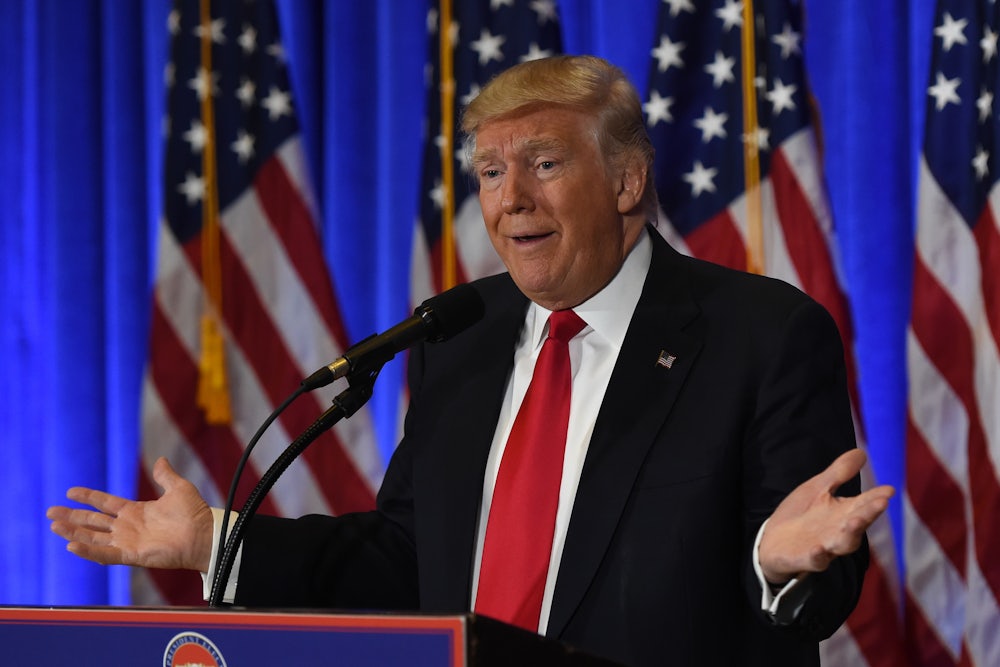 On Wednesday, after weeks of waiting, Trump finally revealed his plan. As expected, the plan itself does almost nothing to prevent Trump from profiting from his presidency. Instead, Trump will retain ownership of his businesses, which his adult sons will run as a trust. He claimed he will not know what they are doing, but Trump’s close relationship to his children means that is insignificant. To avoid violating the emoluments clause of the Constitution, Trump pledged that money from all foreign visitors staying at his hotels will be donated to the Treasury, effectively melding his business with the U.S. government—which is precisely what he is supposed to avoid. This actually encourages foreign governments to stay in Trump hotels because he can then take credit for the amount of money he has raised for the Treasury.
