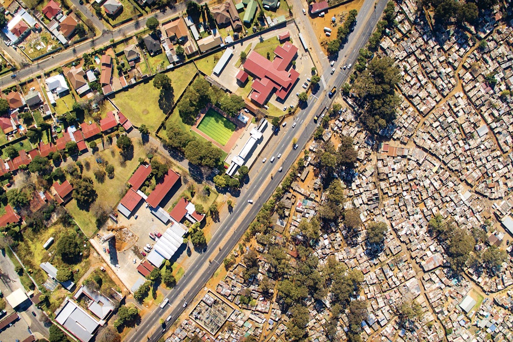 Photographer Johnny Miller moved to South Africa that year and set out to chronicle the country’s segregation from the skies. “Drones have an incredible ability to transform how we see the world,” he says. “There is an electricity in the air in South Africa right now, a nervous tension. People are tired of relying on platitudes and promises from 22 years ago. They want to see change.”