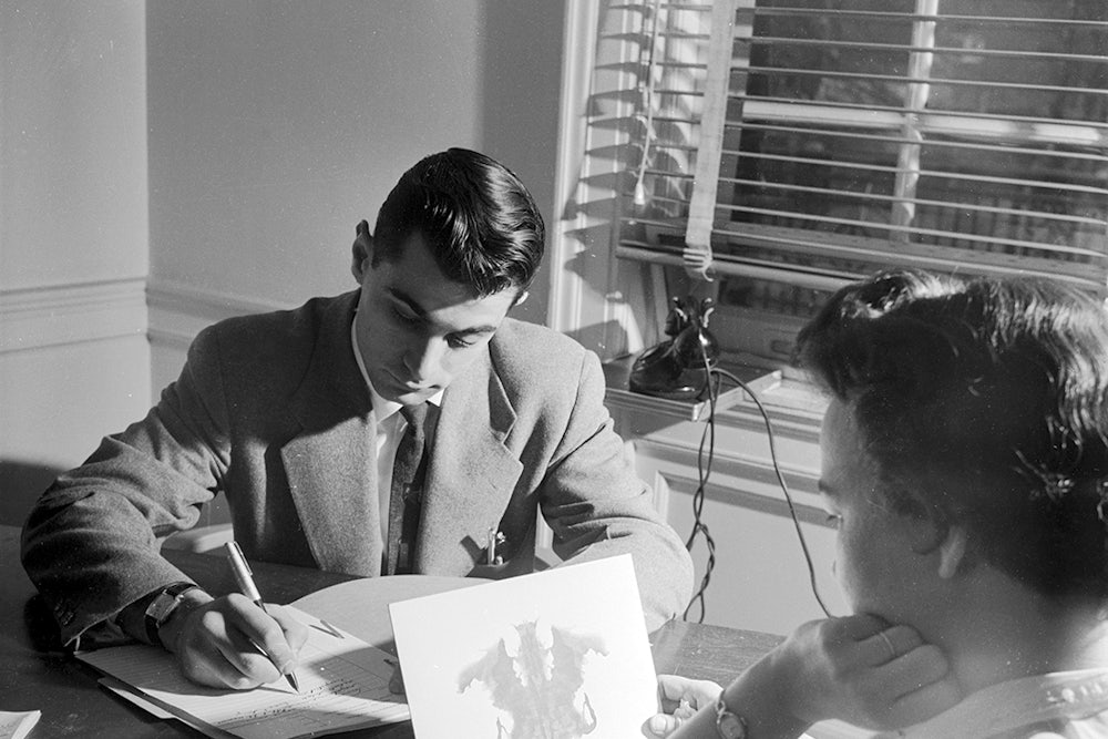 When the Rorschach test burst onto the American scene in the 1940s, it seemed wholly different from other personality tests, or “people-sorting instruments,” as they were then called without a trace of irony. With the rise of the labor force during and after World War II, corporations had warmed to the idea of using cheap, standardized tests to fit workers to the jobs that were right for them, a match made under the watchful eyes of executives eager to keep both profits and worker morale high. In this late-capitalist pursuit, they were guided by tests like the Personality Inventory, the Personal Audit, the Myers-Briggs Type Indicator, and the Humm-Wadsworth Scale, all of which promised to help corporations manage the influx of millions of new workers into the workforce, most of whom were women and veterans who had enrolled in college after the GI Bill passed in 1944. Next to these tests, the Rorschach seemed to be something else entirely: not a mechanism for sorting people, but an occasion for self-expression—more like “art therapy,” observed an early Rorschach adopter, than a multiple-choice questionnaire.