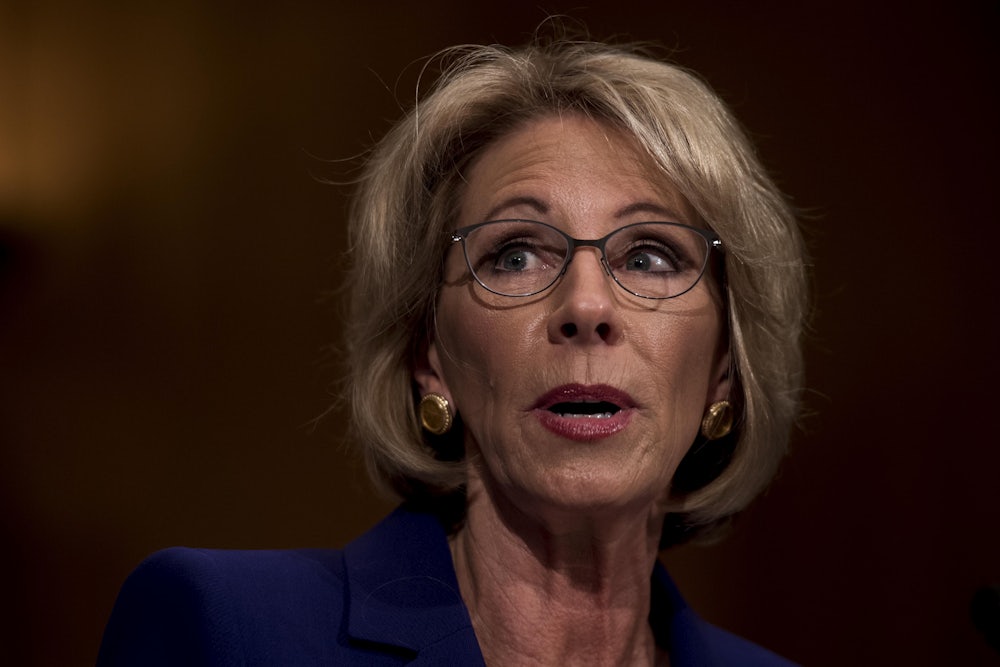 DeVos looks likely to be confirmed as the nation’s next secretary of education Tuesday, but she evidently had time for one more controversy following her disastrous confirmation hearing earlier this month. The Washington Post reports that, in written answers she submitted to questions from senators, DeVos “appears to have used several sentences and phrases from other sources without attribution—including from a top Obama administration civil rights official.”