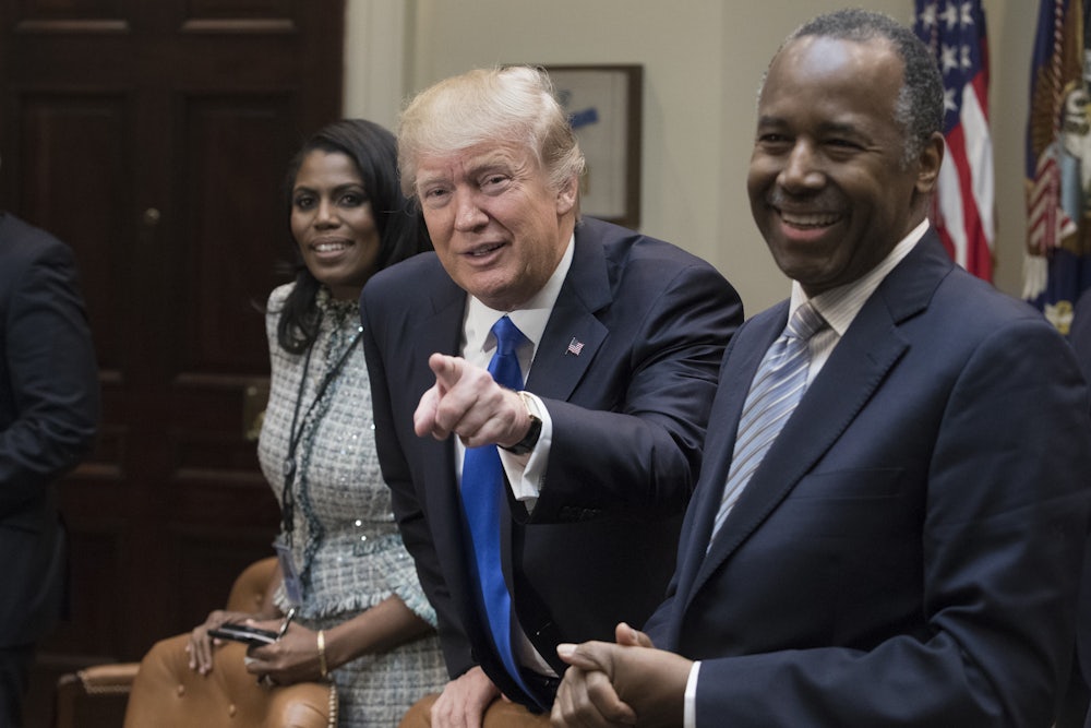 At an event this morning in honor of Black History Month, the president delivered a free-associative ramble about all the black people he can think of, plus a few pithy interludes disparaging the press. He opened what he called “our little breakfast” with a thanks for all that Ben Carson—who he has charged with fixing our “terrible” inner cities “big league”—taught him on the campaign trail about the struggle of black Americans.