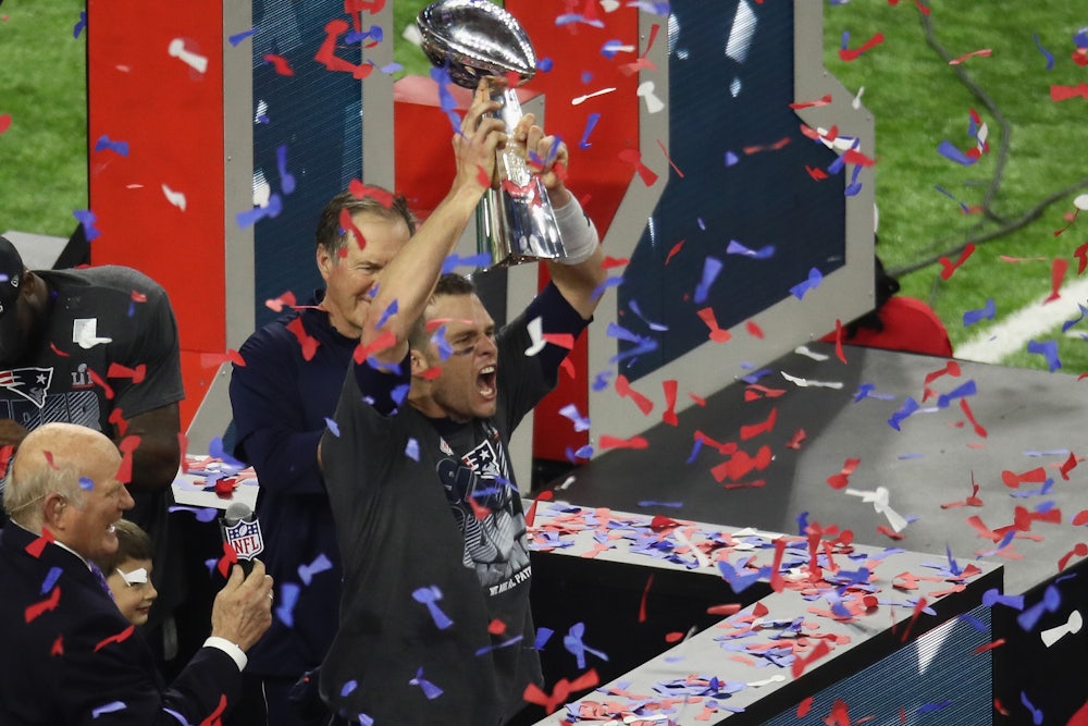 The silver lining was watching tens of thousands of the most Boston-y people on the planet booing Roger Goodell as he handed the Vince Lombardi Trophy to Patriots owner and Friend of Donald Trump Robert Kraft. Goodell—perhaps the highest paid fall guy in the world—always deserves to be booed by a stadium full of angry drunks, but he especially deserves it after leading a Benghazi-ish witch hunt against Tom Brady, which led the Patriots quarterback and Friend of Donald Trump to be suspended for the first four games of the season. (It also gave Brady, Kraft, and Patriots coach and Friend of Donald Trump Bill Belichick perhaps the three most unearned chips on shoulders in world history.) It sucked to watch Kraft shout about how sweet the victory was, but it was almost worth it to watch Goodell try and fail to maintain his dignity as the boos cascaded. Almost.