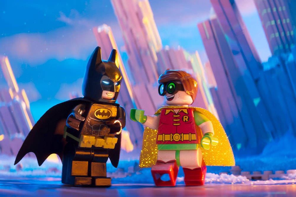 The genius behind The LEGO Movie is also the reason every subsequent LEGO movie—starting with The LEGO Batman Movie and surely a dozen movies to follow—is destined to be a little bit worse. The LEGO Movie was fresh and different. But it could only work once, because you can only wink and nudge as often as that movie did—incessantly, compulsively, like a happy eager dog wagging its tail—so many times before the joke starts to try our patience. The LEGO Movie felt like the product of two guys, Phil Lord and Christopher Miller, who had spent their whole lives having every pop culture meme beamed directly into their brains before returning them all to the world in a glorious hellzapoppin seizure-inducing delirium. The movie let them play in every little kids’ sandbox; you could almost see their disbelief that they were being allowed to have this much fun. But the thing about a sequel or a spinoff, even a mostly fun one like The LEGO Batman Movie, is that it’s hard to recreate enthusiasm and inventiveness. What was once new is now, already, routine.