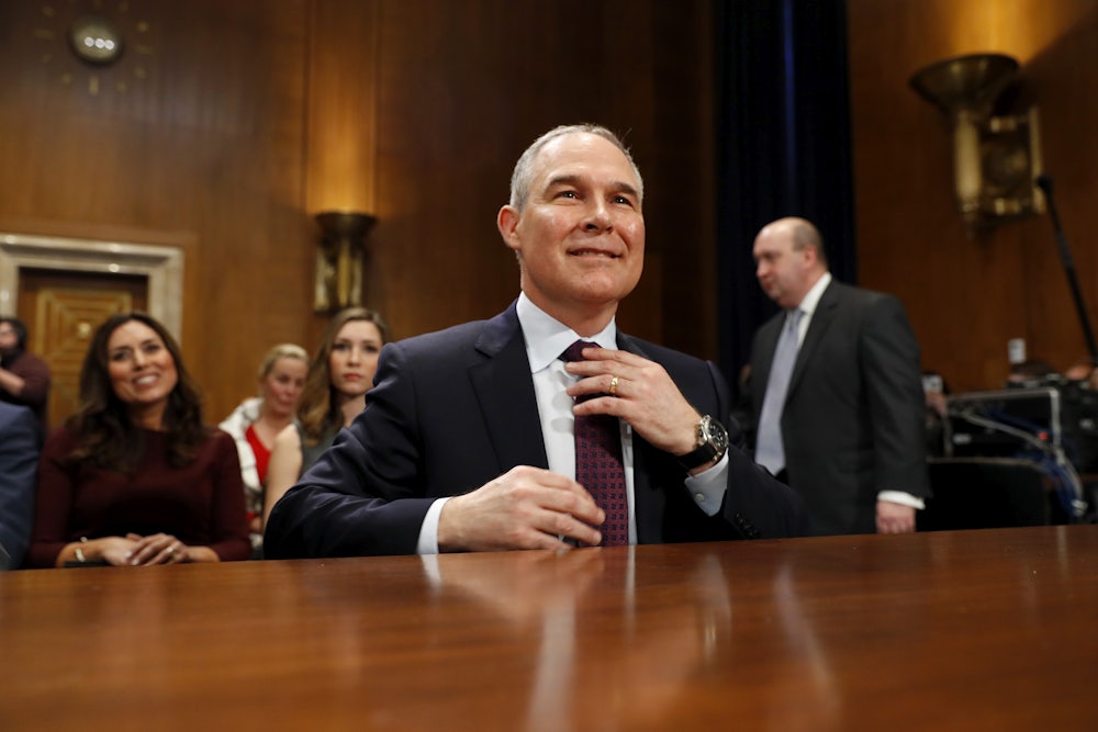 The internal opposition to Pruitt will likely make for a rocky tenure. “It could get ugly,” Christine Todd Whitman, the former EPA administrator under George W. Bush, told me this week. “EPA career staff have ways of getting information out if they don’t like what the administrator is doing. They have friends on the hill they can go to. They can slow things down. They can make things really uncomfortable.” Whitman said she’s already hearing about more so-called “uncomfortable” acts. “The unions are organizing their members to protest in the street,” she said. (EPA employees held an anti-Pruitt protest in Chicago last week.)