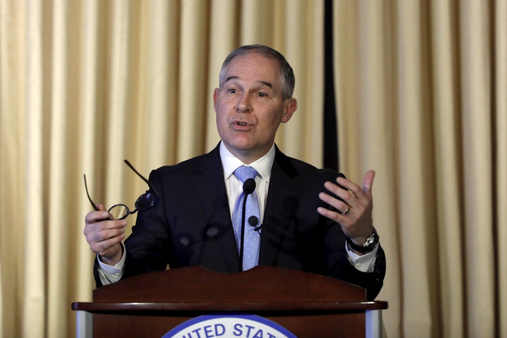 On Wednesday, Republican state officials from fossil fuel–heavy states sent a letter to Pruitt, the new administrator of the Environmental Protection Agency, asking him to withdraw an Obama-era request for methane emissions information from oil and gas companies. “Many companies involved with this request cannot afford the time and expense of complying with an empty, heavily regulatory burden,” the letter stated. “We sincerely hope that the era of regulatory harassment is over...”