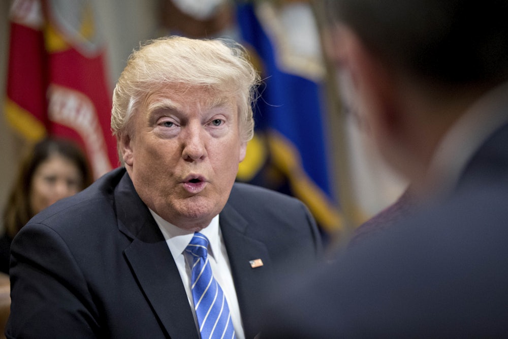 The president wants to make sure you understand that everything is going just fine in the White House. “Don’t let the FAKE NEWS tell you that there is big infighting in the Trump Admin,” Trump tweeted this morning. “We are getting along great, and getting major things done!” This unconvincing denial was designed to rebut multiple reports of a shambolic White House, notably an in-depth Washington Post report on the emotional rollercoaster ride that took Trump from the high of a much-praised address to Congress to the low of a weekend where he blindsided his own staff with a series of evidence-free tweets accusing former President Barack Obama of wiretapping him during the election.