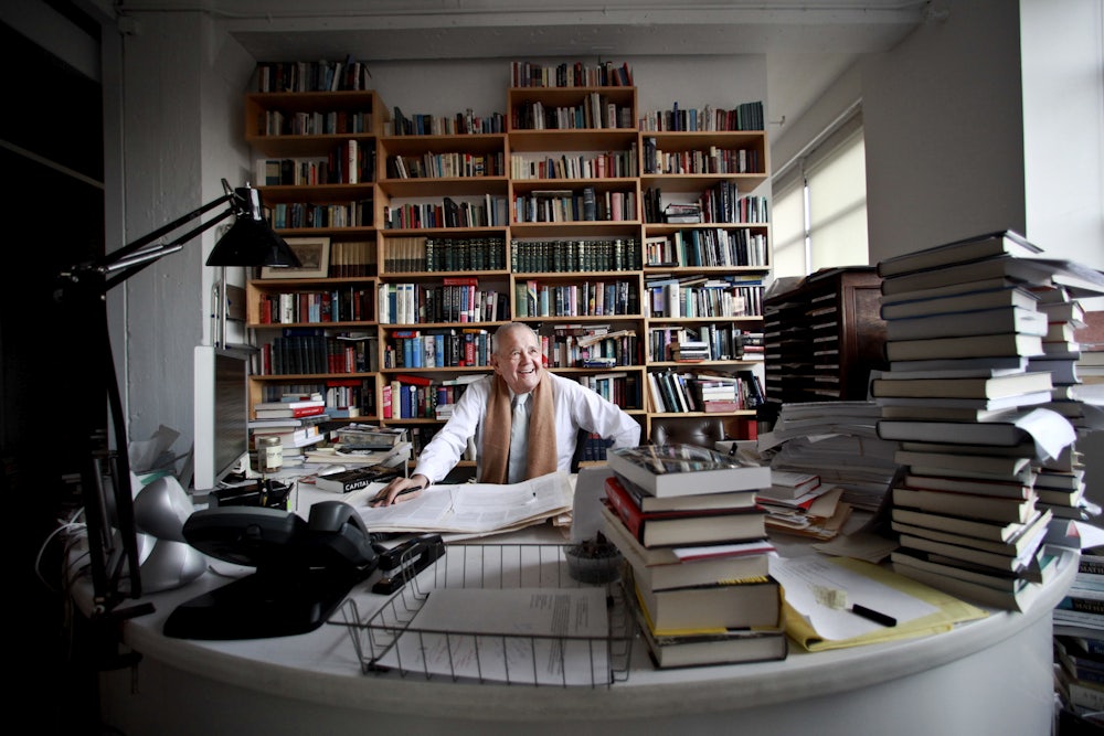 Even after five decades, he enjoyed feeling the urgency of his task. “We’re in a storm of books!” he warned me at my interview. The hundreds of review copies on the office shelves looked perfectly ordered. I suppose he was thinking about what the books themselves said—and who could write about it?