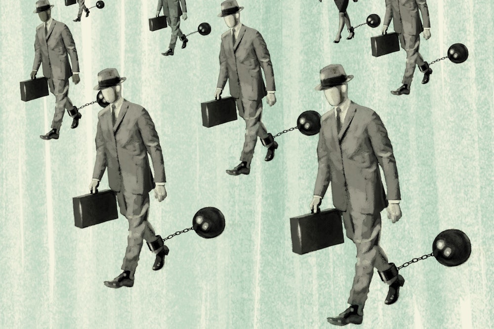 Yet because employment contracts create the illusion that workers and companies have arrived at a mutually satisfying agreement, the increasingly onerous restrictions placed on modern employees are often presented as “best practices” and “industry standards,” framing all sorts of behaviors and outcomes as things that ought to be intrinsically desired by workers themselves. Who, after all, would not want to work on something in the “best” way? Beyond employment contracts, companies also rely on social pressure to foster obedience: If everyone in the office regularly stays until seven o’clock every night, who would risk departing at five, even if it’s technically allowed? Such social prods exist alongside more rigid behavioral codes that dictate everything from how visible an employee’s tattoo can be to when and how long workers can break for lunch.