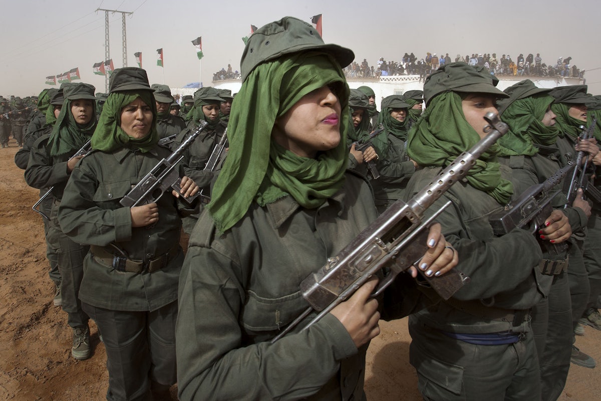 Sahrawi troops march in the Dakhla camp in February 2016, as the United Nations distributes water. The following month, Morocco expelled U.N. officials from Western Sahara after Secretary-General Ban Ki-moon called Morocco’s presence there an “occupation.” He has expressed concern about the “potential danger” that Sahrawi youth could be radicalized by Islamic extremists, given the protracted nature of the refugee crisis.