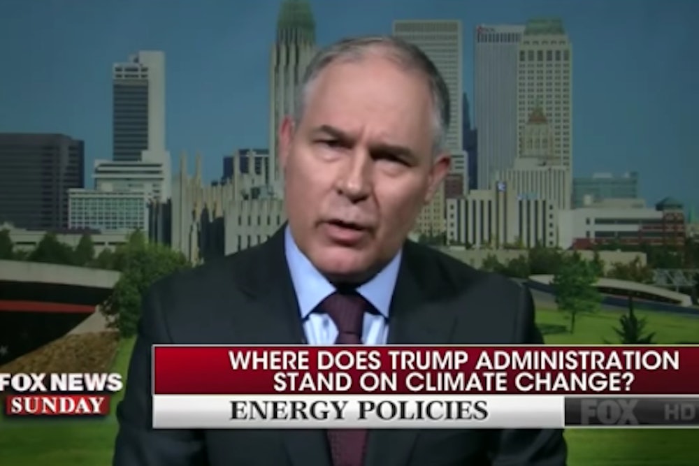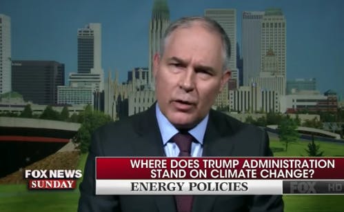 It may be hard to believe, but right-wing conservatives haven’t been too happy with the Environmental Protection Agency administrator. They like that he denies the scientific fact of human-caused climate change, and that he’s all-in on dismantling President Barack Obama’s regulations on carbon emissions from coal plants. But they don’t like that Pruitt has reportedly pushed back on President Donald Trump’s request to revisit the endangerment finding, the single piece of EPA legalese which allows the agency to regulate greenhouse gas emissions. And they’re not pleased with the fact that Pruitt has openly disagreed with some of Trump’s proposed cuts to the agency.