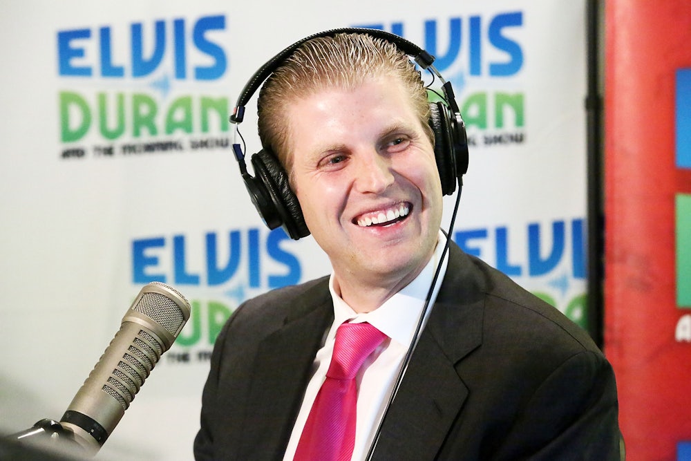 Eric also tried to push the humanitarian line, which the New York Times, among other media outlets, recently ate up. He claimed that his father and his sister, the more beloved Ivanka, were so moved by Assad’s atrocious chemical gas attack that they simply had to retaliate. According to Eric, “Ivanka is a mother of three kids and she has influence. I’m sure she said, ‘Listen, this is horrible stuff.’” (It seems like Eric is not totally sure if his dear sister said anything of the sort.)