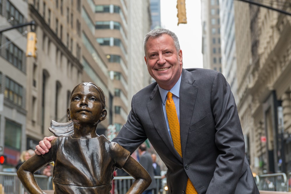 "Let’s be blunt, the 'Charging Bull' is a symbol for unfettered capitalism," says @NYCMayor will defend "Fearless Girl."