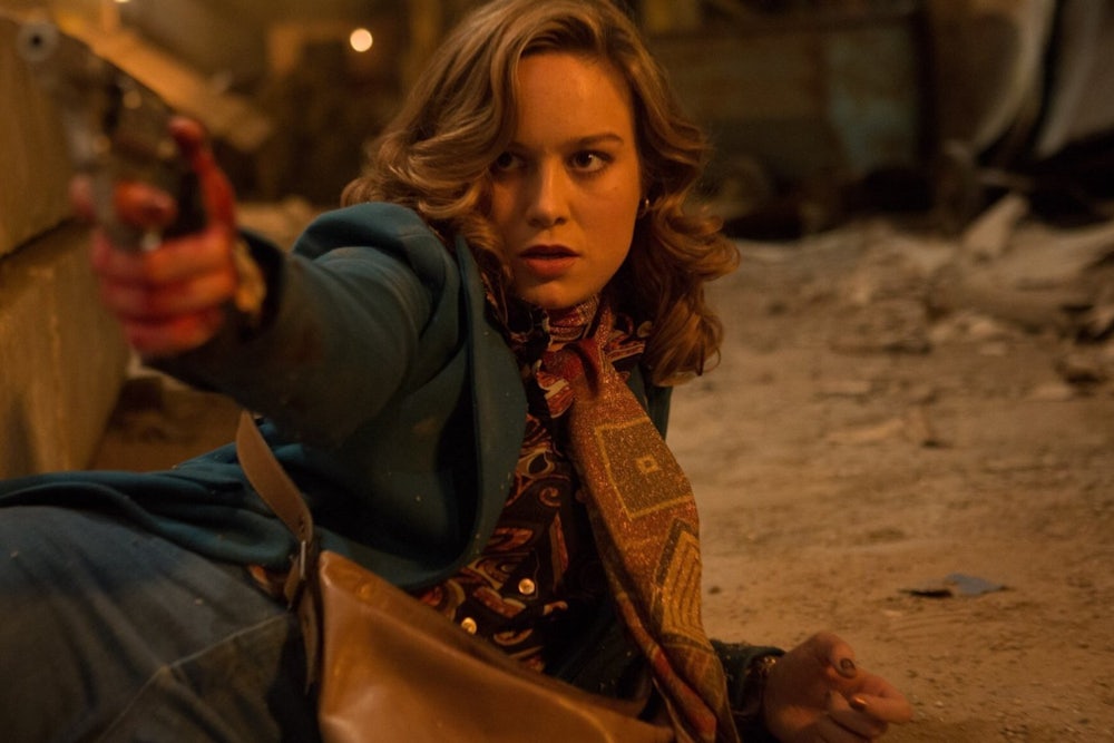 Still, it’s impossible to care much about what happens to anybody in this movie. Larson, who won an Oscar for playing a traumatized rape survivor in Room, carries herself with the same mixture of sincerity and tongue-in-cheek wryness as she did in another recent self-conscious homage to genre, Kong: Skull Island. Her commitment to playful professionalism is the film’s highlight, and it’s a pity more in the cast don’t follow her lead. Copley’s buffoonish weapons dealer never quite arrives at the lovable-idiot caricature he strains to achieve. Murphy lends a sexy soulfulness to the drab Chris, while Hammer practically struts like a peacock, treating the escalating body count as just good sport. Ord’s so conceited he doesn’t seem to believe he’d be killed by this group of inferior life forms, and his muss-proof hair is a great running joke amidst the zinging bullets and human carnage.