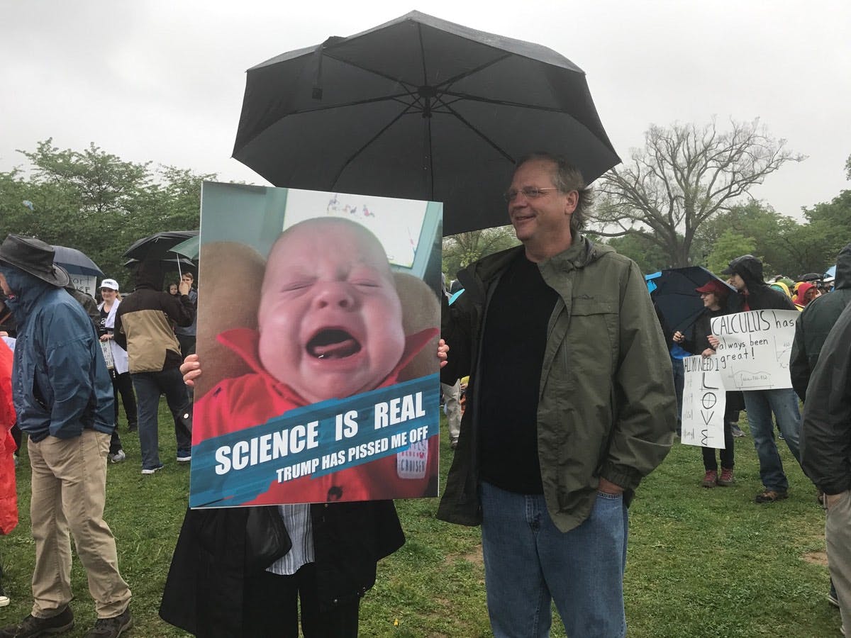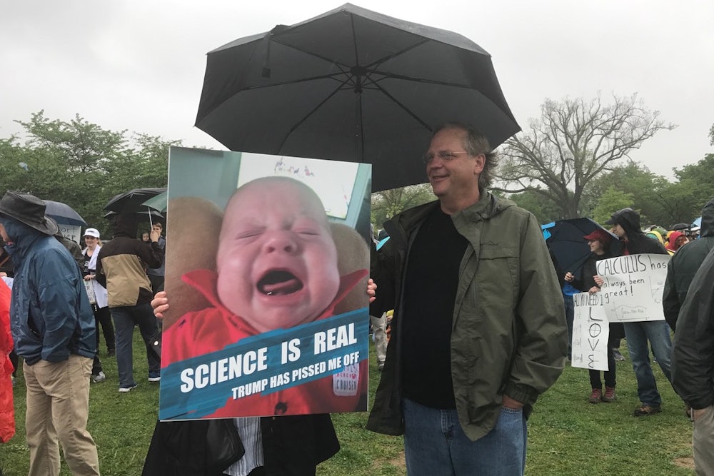Many attendees were upset about Trump’s proposed budget cuts to scientific research. Amy and Dana Blackmer, from Richmond, Virginia, have two daughters who are scientists, one of whom is trying to get into a National Institutes of Health program that studies the CRISPR gene-editing method. “She has been studying her little butt off to get in,” Dana said. Trump’s budget proposes cutting NIH by 18 percent.