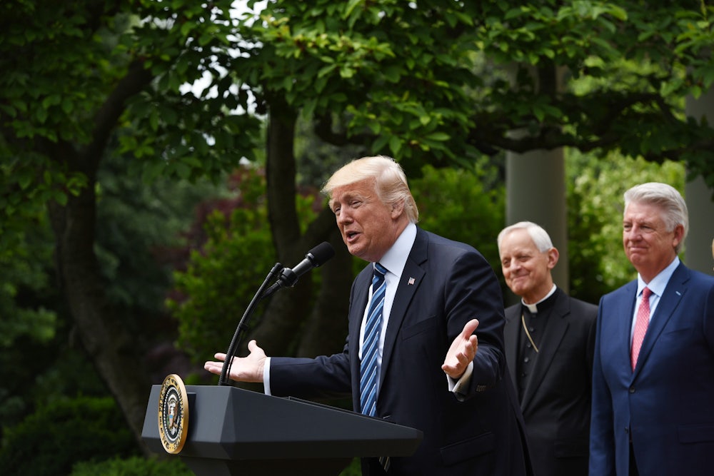 President Donald Trump concluded Thursday’s National Day of Prayer with more than just a pageant of platitudes. Joined in the White House Rose Garden by several nuns of the Little Sisters of The Poor—who famously sued the Obama administration over the Affordable Care Act’s contraception mandate—Trump signed an executive order “promoting free speech and religious liberty.” The order is mercifully less sweeping than many had feared, but it still opens the door to policies that will erode the wall between church and state.