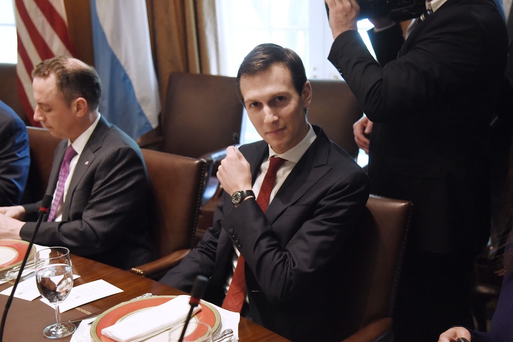 For the first four months of the Trump administration, Kushner could do no wrong. He quickly amassed a remarkable portfolio of responsibilities, especially considering the fact that he has no prior government experience and seems to be almost singularly talentless. (His defining trait is his endless drive for vengeance for slights real and perceived.) Nevertheless, Kushner was tasked with improving relations with China and Mexico, solving the opioid crisis, and making peace between the Israelis and Palestinians, among other lesser responsibilities like criminal justice reform. He seemed to be the secretary of everything.