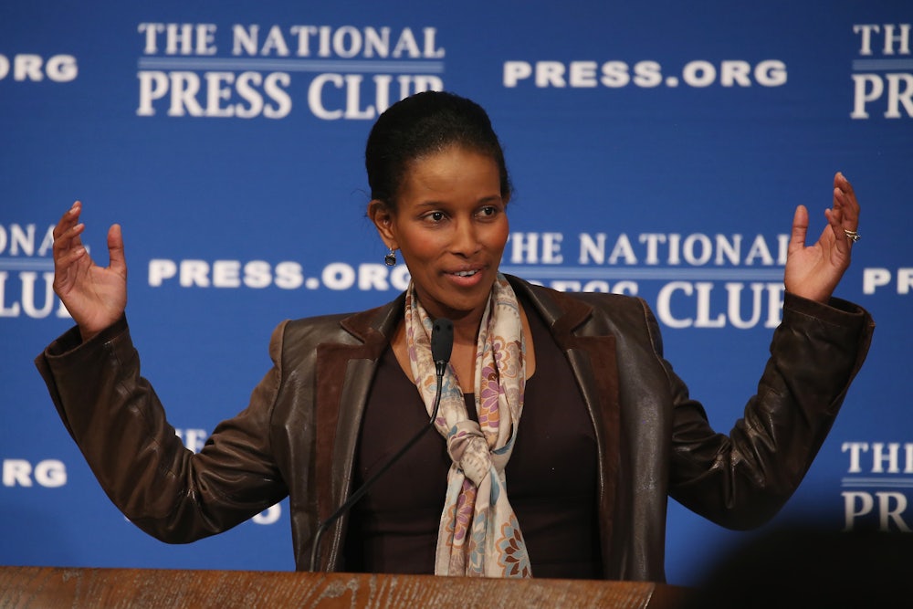 Enmeshed in the conservative think tank world, Hirsi Ali has successfully branded herself an expert on Islamic extremism. She has repeatedly claimed that Muslims are responsible for “70 percent” of all violence in armed conflicts around the world. There’s no evidence that this is true, as Max Blumenthal confirmed with foreign policy experts in 2015. In May, she blamed the rise of anti-Semitism in Europe squarely on Islam—never mind that the continent’s surging far-right fringe has quite a bit to do with it too. Her views on Islam are largely indistinguishable from that of Donald Trump and his administration.