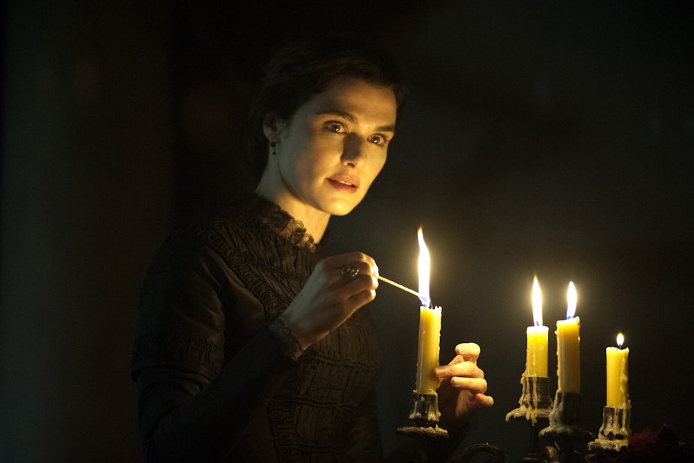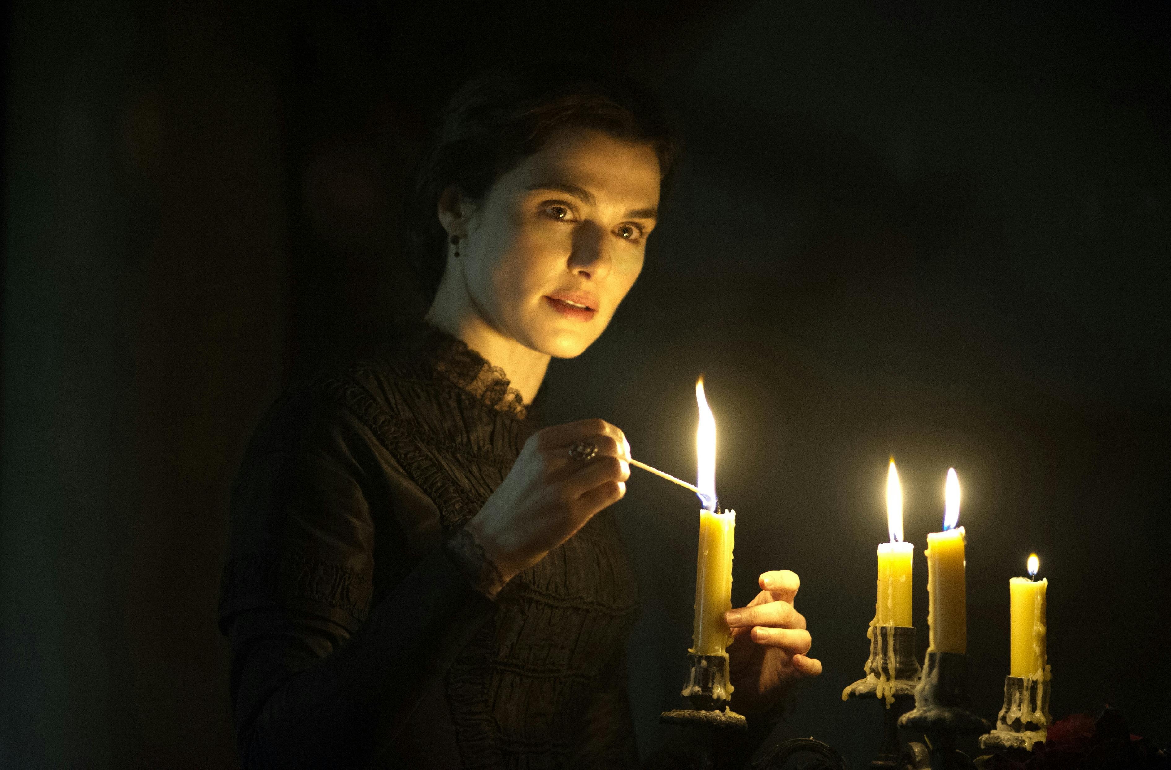 It takes at least 15 minutes for Rachel Weisz to appear on screen, but when she does it is a quiet, contained event. Nonetheless, the effect of her face is a payoff akin to an explosion in an action movie. Weisz’s face is very slightly asymmetrical, and she can control the cadence of her voice in a way that introduces the character of Rachel as instantly magnetic. She’s festooned in widow’s weeds throughout the movie, and from inside that black cocoon her face is like one of those floodlights the cops put up in New York at night: blinding, gentle violence.