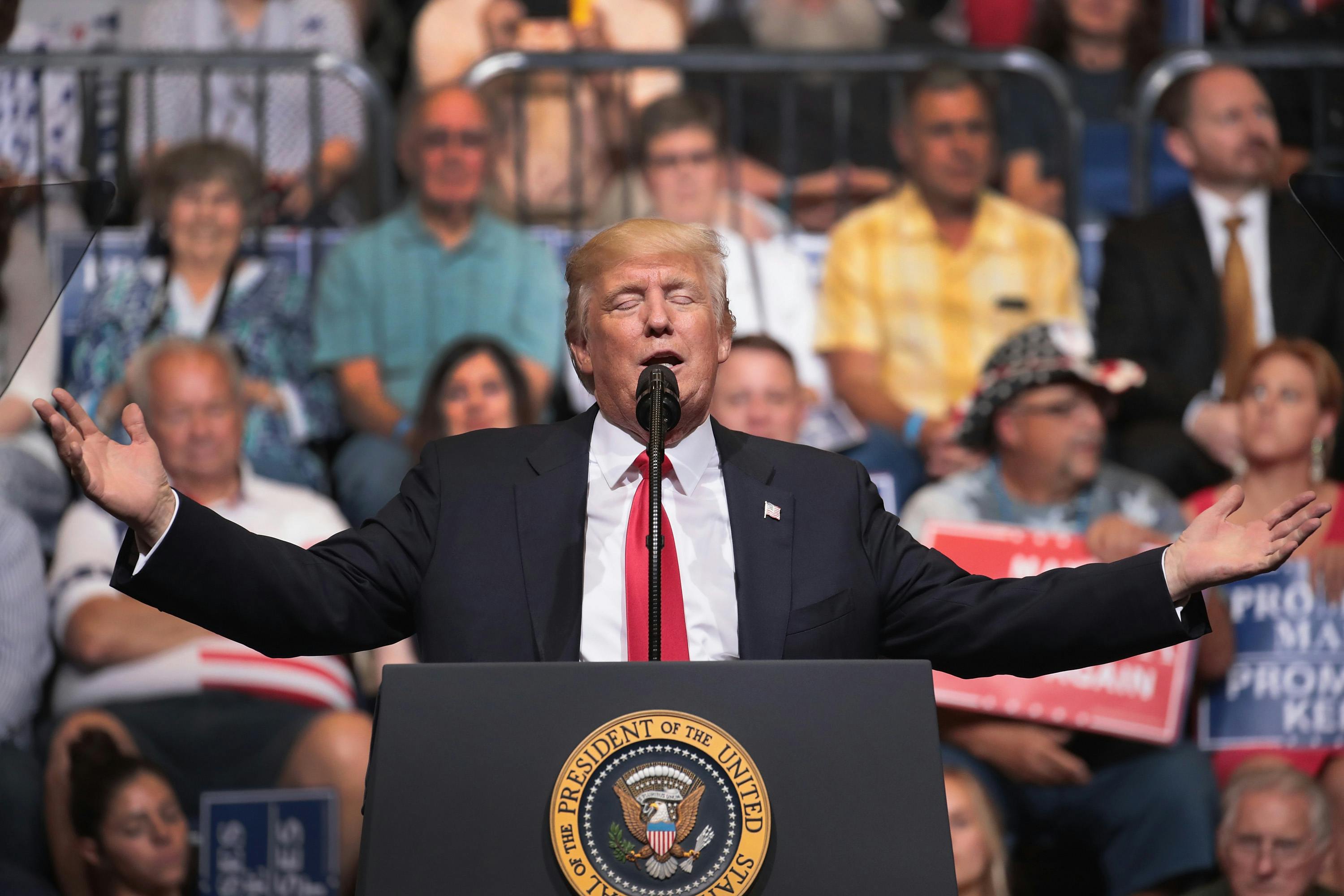 The president was feeling himself last night. Scheduled to speak for 30 minutes at a campaign rally in Iowa, he raved for over an hour, declaring that he was working on legislation to block immigrants from receiving welfare for five years (that legislation already exists and was signed by Bill Clinton); that the GOP victories in special elections in heavily Republican districts were proof that “all we do is win, win, win” (Trump’s approval rating is currently sitting at 36 percent); that his cabinet is full of millionaires because he doesn’t want a “poor person” as commerce secretary; and that The Wall the United States will construct on its Mexican border will be made out of solar panels (I don’t even know what to do with the last two).