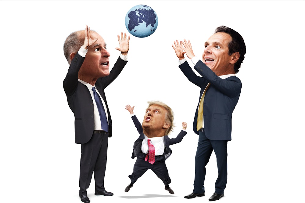 But the Paris decision may also reshape the world for the better, or at least the very different. Consider: A few days after Trump’s Rose Garden reveal, California Governor Jerry Brown was in China, conducting what looked a lot like an official state visit. He posed with pandas, attended banquets—and sat down for a one-on-one meeting with President Xi Jinping, which produced a series of agreements on climate cooperation between China and California. (Trump’s secretary of energy, Rick Perry, was in Beijing the same week: no pandas, no sit-down with Xi.) It was almost as if California were another country. Call it a nation-state—a nation-state that has talked about launching its own satellites to monitor melting polar ice. A nation-state that has joined New York and a dozen others in a climate alliance to announce they will meet the targets set in the Paris accord on their own. A nation-state that already holds joint auctions with Quebec in its carbon cap-and-trade program. A nation-state that is convening hundreds of other “subnational actors” from around the world next year to pledge to keep the rise in global temperature below 2 degrees Celsius.