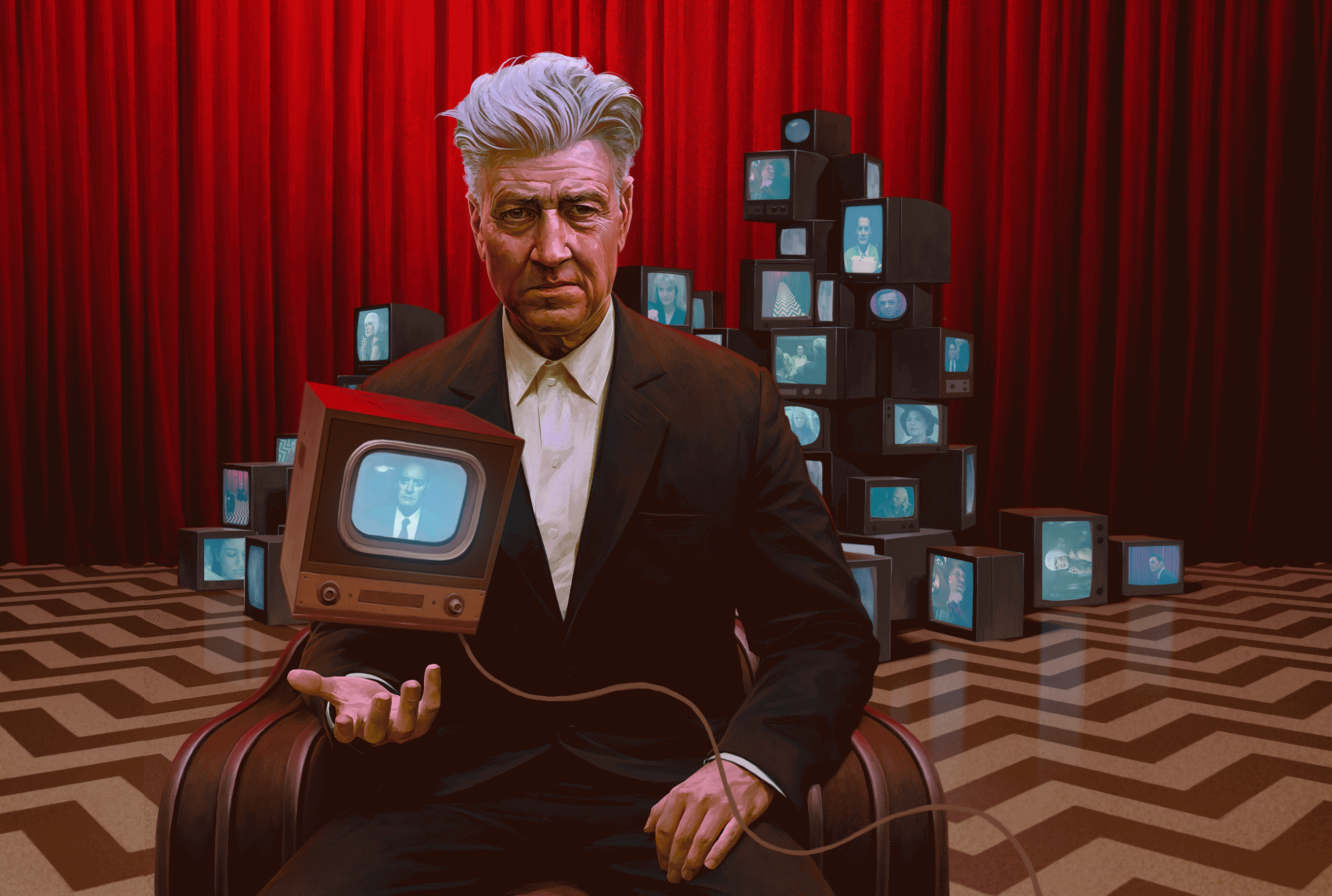 It makes sense that Lynch and Frost were both drawn to the same menacing, glamorous source material. Frost came from Hill Street Blues, a cop procedural that relished an intricate mystery. Lynch was fresh from making Blue Velvet, a cryptic art-house thriller that features, early on, a close-up of a rotting human ear. That shot of severed cartilage is what filmheads refer to as an iconic “Lynchian” image—a term that has expanded into an accordion of meanings since the world first listened to a deformed baby crying in Eraserhead in 1977. David Foster Wallace came closest to nailing its essence in 1996: “a particular kind of irony where the very macabre and the very mundane combine in such a way as to reveal the former’s perpetual containment within the latter.”