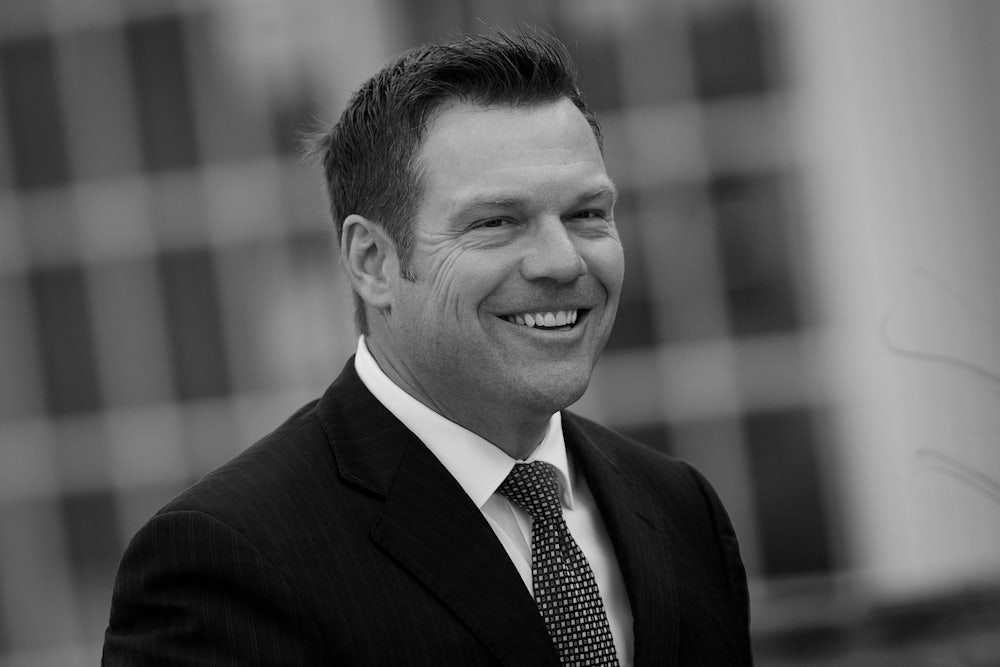 Of all the rising stars on the right, none are more gleefully anti-democratic and dangerously competent than Kris Kobach. In addition to his Yale law degree, he has an undergraduate degree from Harvard and a PhD from Oxford. He resembles Ted Cruz in this way, but is far more telegenic and less viscerally repellent than the Texas senator. And he has spent years implementing the vilest of Trump’s ideas long before Trump made them mainstream in the Republican Party.
