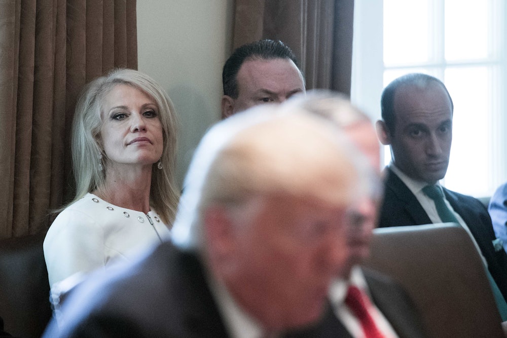 While Donald Trump Jr.’s emails, and the meetings between Trump campaign officials and Russian operatives, are indeed “hard evidence” of “furtive collusion”—just not proof of “systemic, sustained” collusion. So is Conway suggesting that chaotic, occasional, and badly disguised collusion between the Trump campaign and the Russian government is okay?